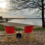 Seeliebe Mit Sauna Und Nur 50 Mtr. Bis Zum Strand المواجهة للشاطئ توفر للزوار مدينة الألعاب المائية والمنطقة للتشمُّس وتراس التشمُّس. هذا المكان يبعد 10 دقائق بالسيارة من Aussichtsturm Senftenberger See.